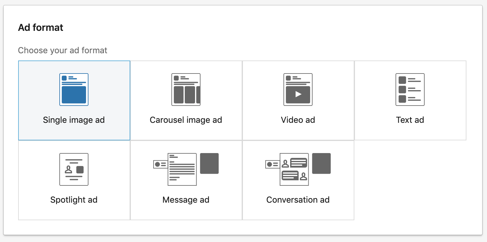 The first thing you will need to figure out is what type of LinkedIn ad format you want to utilize based on your objective, audience, budget, etc. Let’s understand the four types of ads that are available for you to leverage.